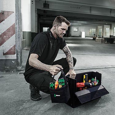 To avoid the trolley tilting-over, only open one drawer at a time and store the heaviest contents in the lower drawers. Note the permissible load capacity of the individual drawers and the total load capacity of the tool trolley. Only move the tool trolley with the drawers closed and locked. Pay attention to unsecured objects lying loosely on the shelf or work surface. Always use the locking mechanism when “parking” the tool trolley. This is the only way to secure the tool trolley from unintentional movements. On inclines, always drive the tool trolley "uphill". Do not use the tool trolley as a substitute for a ladder. Never store pointed or sharp objects unsecured in the tool trolley.