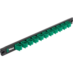 - With its strong magnet, the rail holds securely to metal surfaces. It can also be bolted to the wall.