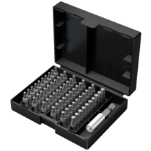 61-piece; tough viscous Wera bits for hexagon head screws for universal use. 1 universal holder 899/4/1 K for insertion in the power screwdriver or for use in the chuck of the electric drill.