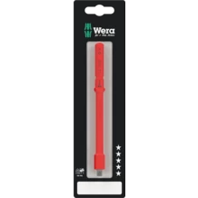Insulated adapter blade. The blade adapts from 9 mm external hexagon to 1/4" external square head. It can be used with the insulated Wera Kraftform Kompakt VDE bladeholding screwdrivers with 9 mm hexagonal blade mounting. It is suitable for insulated Wera 1/4" sockets and 1/4" bit sockets. Safe working at voltages up to 1,000 V is guaranteed as all tools are individually tested at 10,000 V as per IEC 60900.