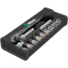 Incredibly compact set arrangement with many tools in a minimum of space. A completely new ratchet set feeling thanks to the unique textile boxes that are very robust and durable. They can be positioned upright for tidy storage on the workshop shelf. Additional surface protection due to textile outer material. Low weight and volume for simpler mobility. Take it easy Tool Finder with colour coding according to sizes.