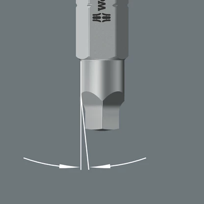 V bits have a conical profile. The clamping forces thus resulting hold Robertson screws securely on the tip of the tool. Ideal for screwdriving at difficult-to-access places.