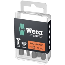 High quality bits for square socket screws. The Impaktor technology offers an above-average service life even under extreme circumstances. Enhanced friction resistance, thanks to the rough diamond-particle coating on the bit tip, prevents any slipping out of the screw head. Particularly suitable for use with customary impact drivers. ¼" hexagon, suitable for holders as per DIN ISO 1173-F 6.3.