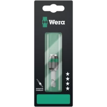 The free-turning sleeve allows screw steadying at the start of the screwdriving process. This makes it easier to apply the tool to the screw and prevents slipping. It can also be used as a short extension for ¼" applications e.g. in combination with the Wera Zyklop Ratchets.