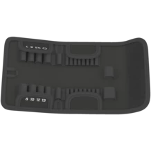 Robust folding bag for space-saving tool storage; ideal for mobile use, as the material used is light and firm; 14 slots; for 1/4" Zyklop Speed ratchet.