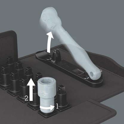 The twist-to-unlock system makes it easy to remove the tools. At the same time, they are securely stored e.g. during transport.