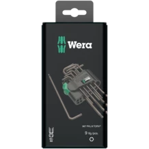 High quality L-key set for recessed TORX® screws. Partially with ballpoint: the ball-end on the long arm allows for reliable working even in difficult installation situations. The BlackLaser surface treatment provides outstanding surface protection, even against corrosion, and a long service life. The tools are quickly to hand thanks to the laser-engraved and thereby wear-resistant size markings on the L-keys. Come in a practical clip fastener out of wear-resistant material, enabling secure storage of the L-keys as well as simple removal.