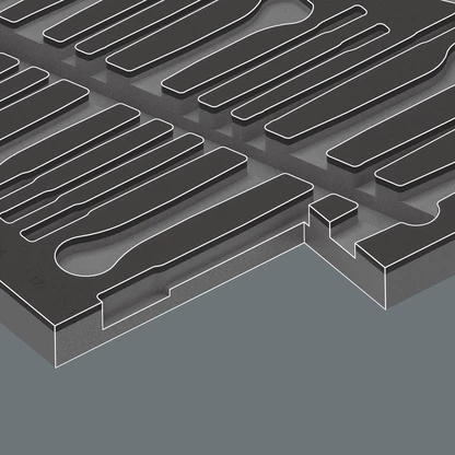 The tools sit securely in the foam thanks to precise contour cutouts, but are easy to remove. The carefully designed arrangement of the tools ensures space-saving storage and quick access to each tool.