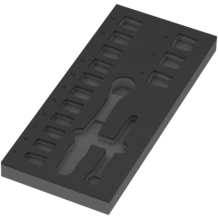 One durable foam insert, without tools; two-coloured for quick identification of missing parts; width x height x depth: 172 x 30 x 392 mm; spare foam insert for Wera item 9724; suitable for the Tool Rebel roller cabinet.