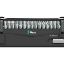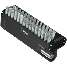 Robust Bit-Check by Wera. Bit-Checks provide a quick overview of the tools available. Bits not needed are simply reinserted into the set and do not get lost. Simple transportation e.g. in the shirt pocket. Includes universal holder with strong permanent magnet for the take-up of bits with ¼" hexagon head drive. Can be inserted in the power screwdriver or for use in the chuck of the electric drill. Multi-component Bit-Check that can be positioned upright for permanently secure bit storage.