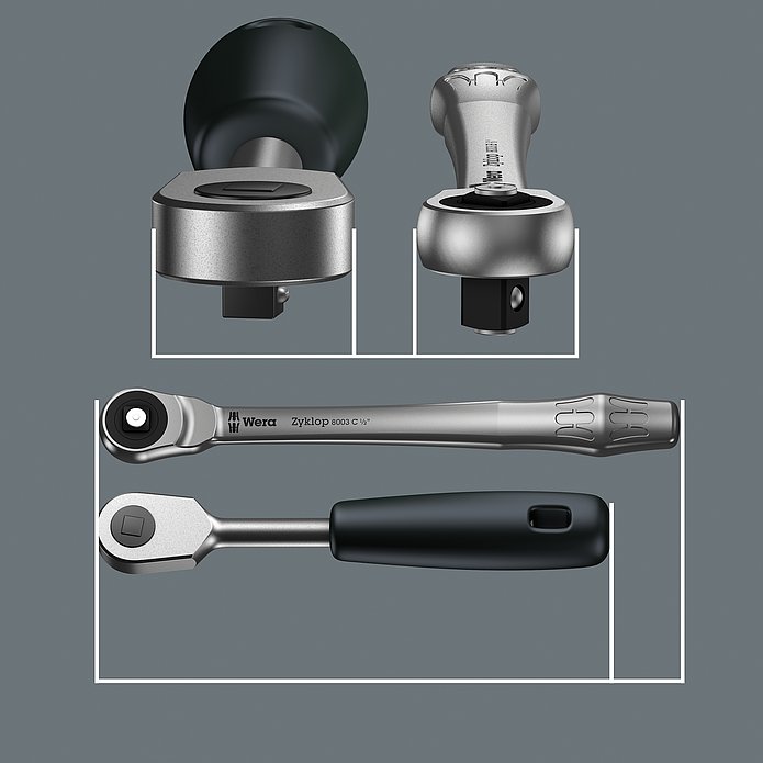 Due to the ever-more confined working environment, space is becoming more and more an issue for the application of ratchets. Our product developers therefore intensively occupied themselves with the issue of confined working spaces, and Wera has now solved this problem. The extremely slim and robust Zyklop Metal ratchet with a long lever was what emerged. When the socket must not get lost and a coincidental change of direction has to be avoided at all cost, the Zyklop Metal Push is the correct choice.