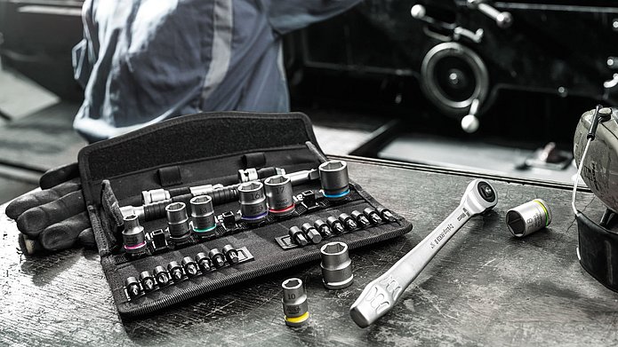 Wera Zyklop Metal Push – extremely slim, robust and precise. With square head insert, secure socket retention and minimal return angle – ideal for tight spaces and powerful work.