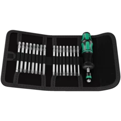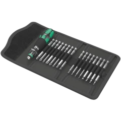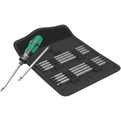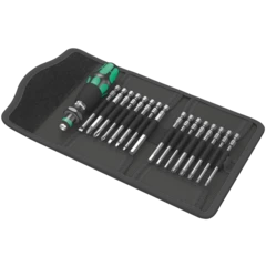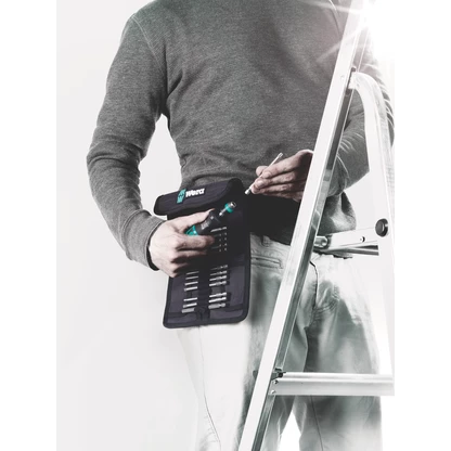 Pouch with 89-mm long bits. Includes 816 R Kraftform holder with Rapidaptor quick-release chuck and multi-component Kraftform handle for low-fatigue working. Suitable for manual and power tool operations; 33-piece.