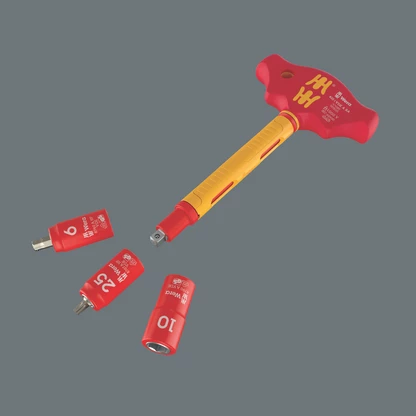 - One 410 i VDE A RA T-handle adapter screwdriver with ratchet functionality for 1/4" sockets and 1/4" bit sockets