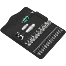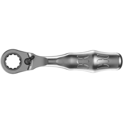 Ratchets and screws in a Kraftform Kompakt format. These drop-forged, full-steel ratchets, Zyklop Mini 1 and 2, combine filigree design with incredible robustness. For particularly rapid screwdriving in confined working situations. Zyklop Mini 1 or Zyklop Mini 2 can be used whenever screwdriving with power tools or conventional hand tools is unfeasible for lack of space. 1 bit ratchet Zyklop Mini 1; suitable for the take-up of bits with ¼" hexagon head drive as per DIN ISO 1173-C 6.3 and E 6.3 and Wera connecting series 1 and 4; also possible to use ¼" sockets by attaching the Wera adaptor 870/1. 1 socket ratchet Zyklop Mini 2; suitable for the direct attachment of Wera Zyklop special sockets 8790 FA.