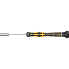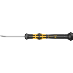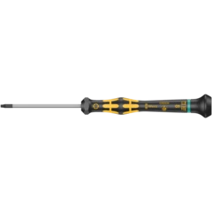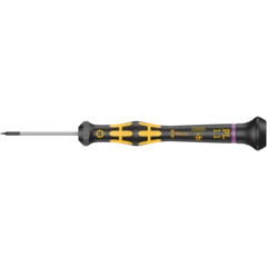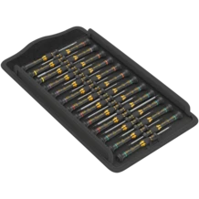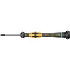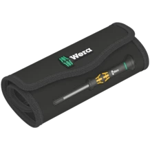 Electrostatically secured Wera Micro screwdriver 25-piece set. The included screw profiles are especially suitable for the use on mobile phones and tablets. Safe protection against electrostatic energy and associated damage. By supporting the hand on the rotating cap, and by the fast rotating zone below the rotating cap, lightning fast turning is possible. Time-consuming hand switching is eliminated. The power zone with integrated soft zones ensures the transmission of high tightening and loosening moments. Precision zone for correct rotation angles whilst adjusting. The Black Point tip provides fitting accuracy and optimum corrosion protection. Take it easy tool finder with size stamping and colour coding by profile to find the required tool quickly and easily. Storage and transport in a robust textile pouch, so the tool is well protected and always close at hand.