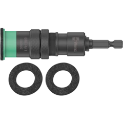 Compact Wera tool set with the 17 most common screwdriving tools for patio construction. Bits in stainless steel design prevent extraneous rust. With extra smart bit holder, which enables a uniform depth thanks to the variable screw depth limitation, and prevents damage to decking with the fitted felt ring.