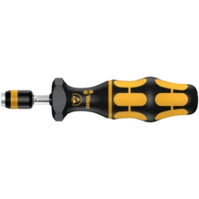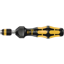 Wera torque screwdriver. Dependable protection against electrostatic energy and associated damage. Variable torque setting option with highest precision. Simple adjustment of the required torque value without any special tools. Easy-to-read scale value. Rapidaptor quick-release technology for rapid bit change. Unlimited torque to loosen seized screws. Multi-component Kraftform handle with hard and soft zones for high working speeds, whilst being easy on the hand. Suitable for bits with ¼" hexagon head drive as per DIN ISO 1173-C 6.3 and E 6.3 (ISO 1173).