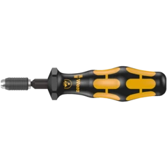 Wera torque screwdriver. With a customised factory pre-set torque value. For all applications, where the same constant torque and repeat accuracy are required. The torque can be changed with an extra tool within the measuring range (re-calibration kit can be ordered with the code number 05137003001). Afterwards you can check the set value using an off-the-shelf torque tester. Unlimited loosening torque for slackening stuck screws. Rapidaptor quick-release technology for rapid bit changes. Suitable for bits with a 1/4" external hexagon drive as per DIN ISO 1173-C 6.3 and E 6.3 (ISO 1173). Multi-component Kraftform handle with hard and soft zones for high working speeds, whilst being easy on the hand.
