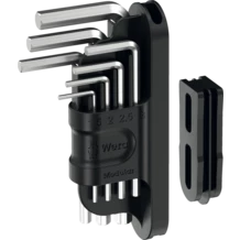 Very compact 7-piece L-key set for hexagonal socket screws. The Hex-Plus profile offers larger contact surfaces in the screw head. The notch effect is reduced to a minimum and the destruction of the screw head is almost eliminated. The thoroughly chrome-plated design guarantees high corrosion protection. All L-keys are easily accessible due to their laser-engraved size markings. One adapter 9549 for Tool-Check Modular, which connects different Tool-Check Modular components. In the compact Tool-Check Modular.