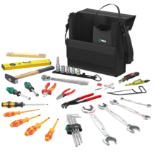 Compact tool set with the most important tools for HVAC services with products by Wera, BESSEY®, KNIPEX®, Lyra®, PICARD®, PUK® and Stabila®. Mobility is made considerably easier thanks to the compact tool container from the Wera 2go system.
