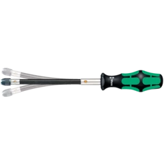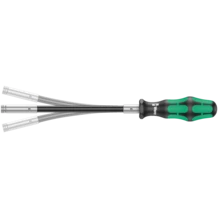Un destornillador con vástago flexible para poder acceder a lugares de difícil alcance. Gracias a la construcción con un porta-puntas especialmente delgado, es posible accionar diferentes perfiles de tornillos incluso en espacios muy estrechos. Un mango multicomponente para altas velocidades de trabajo, y para trabajar de manera especialmente ergonómica al atornillar. Con el sistema de hexágono para que el útil no se pueda rodar del puesto de trabajo.