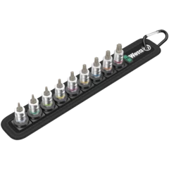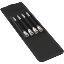 Juego de vasos de punta TORX®, con función de retención para un trabajo en uniones atornilladas especialmente cómodo ya que se reduce el riesgo de que se pierda el tornillo al llevarlo hacia la pieza de trabajo.