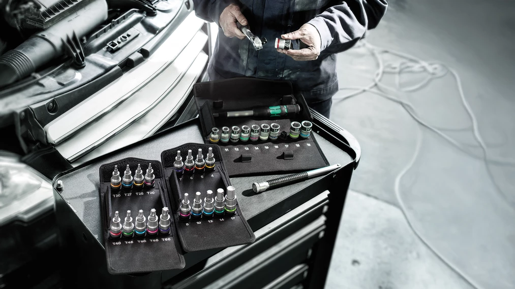 Take it easy, el sistema de búsqueda de herramientas con marcas de colores según el tamaño del útil, para encontrar la herramienta precisa de forma cómoda y rápida. El sistema de búsqueda con marcas de colores para tornillos de hexágono interior (llaves acodadas, vasos de punta Zyklop), tornillos y tuercas de hexágono exterior (llave de boca Joker, vasos Zyklop y vasos Zyklop con función de retención) y tornillos TORX® (llaves acodadas, vasos de punta Zyklop).