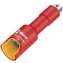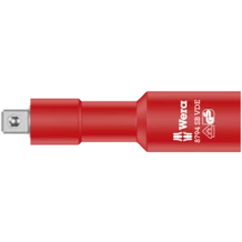 Prolongación VDE de 3/8" que ofrece mayor seguridad gracias a la camisa interna de aislamiento de color amarillo que se ubica debajo de la capa exterior de aislamiento de color rojo, y que en el caso de un daño eventual en la capa roja exterior de aislamiento VDE, queda claramente visible. Se trata de una herramienta probada individualmente pieza por pieza según la norma IEC 60900 a 10.000 voltios para garantizar un trabajo seguro bajo la tensión permitida de 1.000 voltios.