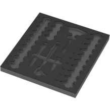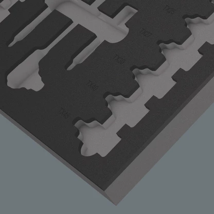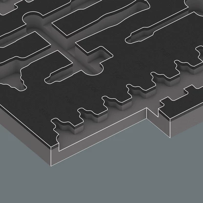 Las herramientas se apoyan de forma segura en la espuma, gracias a las cortes precisas de los contornos. La ubicación inteligente de los útiles permite un alojamiento económico y un acceso rápido a la herramienta precisa.