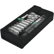 Para aflojar y apretar tornillos simplemente por medio de la fuerza de impacto, sin tener que utilizar máquinas. Los destornilladores de golpe de Wera disponen de un grado de efectividad especialmente alto por su construcción robusta de doble curva. La fuerza de impacto es transformada en un movimiento rotativo. Con esta herramienta no hace falta utilizar aparatos de accionamiento por aire comprimido. La caja de material textil es sumamente robusta y ofrece así una forma muy comacta de alojar esta herramientas tan valiosas.