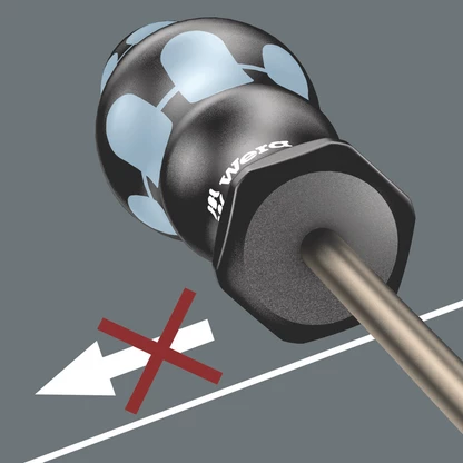 Destornillador Kraftform Plus de alta calidad de acero inoxidable. Las herramientas de acero inoxidable de Wera se elaboran con ayuda de un proceso de endurecimiento por congelación al vacío y disponen así de los valores de dureza y resistencia que se necesitan para uniones atornilladas. La utilización industrial es posible sin ninguna clase de restricciones. Con un mango Kraftform multicomponente para un trabajo rápido y ergonómico. Con sistema de búsqueda de herramienta Take it easy: marcas de color según el perfil y sellos con el tamaño. El sistema de protección contra el rodamiento evita las molestias que conlleva el perder la herramienta que se rueda en el puesto de trabajo.