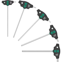 Juego de herramientas con 5 destornilladores con mango en "T" para tornillos de hexágono interior. Con varillas extra-largas para uniones atornilladas a profundidad. Hex-Plus ofrece mayores superficies de apoyo dentro de la cabeza del tornillo. De esta forma, el efecto de entalladura se reduce a un mínimo, y la destucción de la cabeza del tornillo queda casi del todo excluída. Con función de sujeción para un alojamiento seguro del tornillo de hexágono interior en la herramienta. Especialmente adecuado para trabajos en el área de las instalaciones sanitarias, de calefacciones y de climatizaciones. El destornillador de mango en "T": la forma ideal del mango permite una transmisión de pares de apriete y desapriete especialmente altos. La forma ergonómica del mango rellena de forma completa toda la palma de la mano, los dedos descansan de manera segura dentro de las molduras suavemente redondeadas del mango. Así, toda la mano entra en contacto con el mango, y se evitan las pérdidas de fricción entre mano y mango. Las superficies de las varillas han sdo bonifcadas de forma especial para conseguir una alta protección anticorrosiva, así como una exactitud óptima del encaje dentro del tornillo.