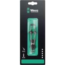 Un porta-puntas manual de alta calidad. El sistema de cambio rápido Rapidaptor permite un cambio ultrarrápido de las puntas sin herramientas adicionales. El potente imán permanente sostiene las puntas de forma extremamente segura. El mango es tipo Kraftform Plus para un trabajo agradable y ergonómico que evita la formación de ampollas y callosidades en las manos. Las zonas duras de agarre sirven para altas velocidades de trabajo mientras que las zonas blandas del mango garantizan una alta transmisión de pares de giro. Adecuado para puntas de hexágono exterior de 1/4" según DIN ISO 1173-C 6,3 y E 6,3 (ISO 1173).