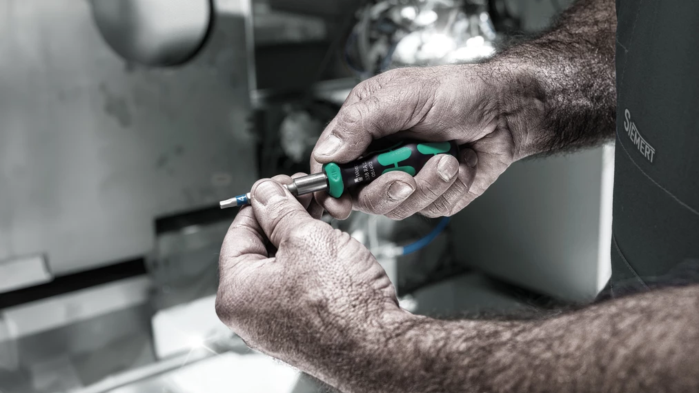 La carraca con dentado fino (36 dientes y un ángulo de retorno del 10°) que está integrada, facilita y acelera los trabajos en uniones atornilladas sin tener que reposicionar el útil constantemente de manera trabajosa.