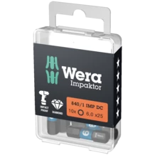 Puntas Impaktor de alta calidad para tornillos de hexágono interior. La tecnología "Impaktor" proporciona vidas útiles sobreproporcionales de la herramienta, incluso en el caso de cargas extremamente altas. La resistencia friccional elevada que produce el recubrimiento con una capa rugosa de partículas de diamante en el extremo de la punta, evita que el útil se salga del tornillo por deslizamiento. El perfil Hex-Plus ofrece mayores superficies de apoyo en la cabeza del tornillo. De esta forma, el efecto de entalladura se reduce a un mínimo, y la destrucción de la cabeza del tornillo se evita casi por completo. Hexagonal de 1/4", adecuado para porta-puntas según la norma DIN ISO 1173-D 6,3.