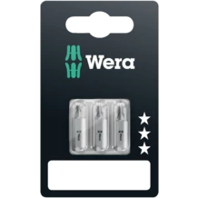 Las puntas duras y resistentes de Wera evitan la rotura prematura del extremo de la salida. Las puntas Z, normalmente son las puntas adecuadas para el caso universal de uniones atornilladas.
