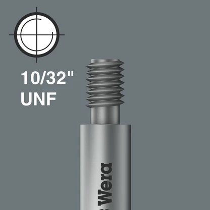 Conexión de rosca # 10-32 UNF (serie de conexión de Wera 16). Arrastre: Para arrastre directo en máquina.