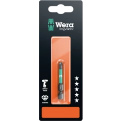 Puntas de alta calidad para tornillos de TORX® interior. La tecnología "Impaktor" proporciona vidas útiles sobreproporcionales de la herramienta, incluso en el caso de cargas extremamente altas. La resistencia friccional elevada que produce el recubrimiento con una capa rugosa de partículas de diamante en el extremo de la punta, evita que el útil se salga del tornillo por deslizamiento. Especialmente adecuadas para la aplicación con máquinas destornilladoras de impacto/de golpe habituales en el comercio. Hexagonal de 1/4", adecuado para porta-puntas según la norma DIN ISO 1173-D 6,3.