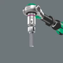 La sujeción del tornillo de hexágono interior en la llave de vaso se realiza por medio de una bola en la punta. Este útil es especialmente adecuado para situaciones de difícil acceso, en las cuales no es posible utilizar la mano para sostener el tornillo.