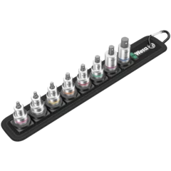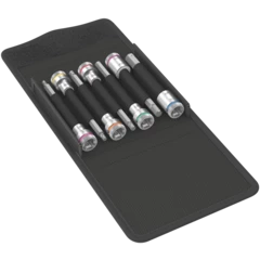 Vaso de punta con arrastre de 3/8" y función de sujeción para un trabajo de atornillar especialmente cómodo y con un riesgo reducido de que se pierda el tornillo al llevarlo hacia la pieza. El sistema de búsqueda rápida de la herramienta Take it easy, con marcas a color según el perfil, permite encontrar la herramienta precisa rápidamente.