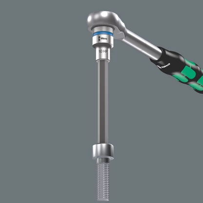 La sujeción del tornillo de hexágono interior en la llave de vaso se realiza por medio de una bola en la punta. Este útil es especialmente adecuado para situaciones de difícil acceso, en las cuales no es posible utilizar la mano para sostener el tornillo.