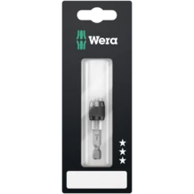 Para una conexión fija, libre de movimientos, entre el porta-puntas y la punta, que se puede volver a soltar de manera rápida. Simplemente desplazar el manguito hacia adelante y cambiar la punta. En versión magnética para un mejor posicionamiento de los tornillos.
