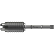 Para una conexión fija, libre de movimientos, entre el porta-puntas y la punta, que se puede volver a soltar de manera rápida. Simplemente desplazar el manguito hacia adelante y cambiar la punta. En versión magnética para un mejor posicionamiento de los tornillos.