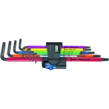 Juego de llaves acodadas de alta calidad para tornillos de TORX® interior. Con función de sujeción para tornillos TORX® según especificación de Acument Intellectual Properties en el brazo largo. Un brazo extra-largo. Llave acodada con camisa envolvente de plástico elaborada de un material redondeado agradable al tacto y agarre. Esta camisa facilita el trabajo también en ambientes de temperaturas bajas, lo hace más agradable y cuida los dedos. Dispone del sistema de búsqueda fácil de herramienta Take it easy con una marcación de la herramienta según el tamaño. El tratamiento de superficie Black Laser proporciona una protección excelente de la superficie, también con relación a la corrosión, y garantiza una larga vida útil. Gracias a las marcas con el tamaño que están grabadas a láser de forma resistente y duradera, las llaves acodadas se tienen a mano rápidamente. Se encuentran en el clip práctico de material resistente al desgaste, para un alojamiento duraderamente seguro y una extracción descomplicada de las llaves acodadas.