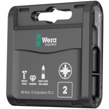 Puntas de alta calidad para tornillos Pozidriv en la caja práctica tipo Bit-Box. La tecnología "Impaktor" permite una vida útil sobreproporcional incluso en caso de unas cargas extremas. La mayor resistencia de fricción que proporciona el recubrimiento rugoso con partículas de diamante en el extremo de la punta evita que la herramienta se salga del tornillo por deslizamiento. Son especialmente adecuadas para la utilización con máquinas atornilladoras de impacto o de golpe usuales en el mercado. Hexagonales de 1/4", aptas para porta-puntas según DIN ISO 1173-D 6,3. Con sistema de búsqueda de herramienta Take it easy: Una marcación a color según el perfil, así como con sellos que indican el tamaño.