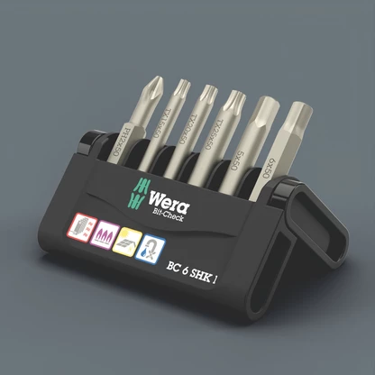 6 puntas de Wera (con un largo de 50 mm) que se encuentran de forma muy organizada en un espacio sumamente compacto en el Bit-Check tan práctico. Especialmente adecuadas para trabajos en el área de la técnica sanitaria, de calefacciones y climatizaciones; los Bit-Checks permiten que, a primera vista, se tenga una idea muy rápida sobre la herramienta que se tiene a disposición. Las puntas que no se necesitan, simplemente se vuelven a colocar en el juego y así no se pierden. Es fácil transportar este juego, por ejemplo en el bolsillo de la camisa. Las puntas son duras y resistentes y sirven para el uso universal.