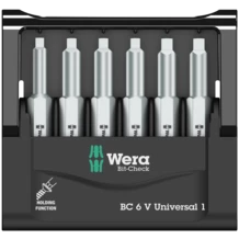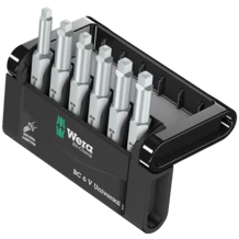 6 puntas de Wera de un largo de 50 mm alojadas de forma sistemática en un espacio mínimo en un Bit-Check práctico. Puntas de alta calidad para tornillos de cuadrado interior con función de retención. Gracias a la fuerza de apriete que resulta de la fuerza de presión superficial entre la punta de salida y el perfil del tornillo, los tornillos se mantienen de forma segura en la herramienta. Duras y resistentes para la aplicación universal. Hexagonal de 1/4", adecuado para porta-puntas según la norma DIN ISO 1173-F 6,3.