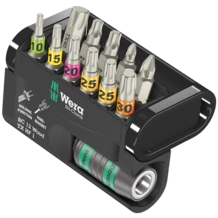 Juego de puntas y porta-puntas, especialmente adecuado para trabajos en madera. Según la especificación de Acument Intellectual Properties y gracias a su geometría especial, ¡las puntas 867/1 TORX® HF mantienen los tornillos TORX® de forma segura en la herramienta! Esto es especialmente útil cuando se trabaja en áreas difícilmente accesibles en las cuales no es posible utilizar la segunda mano para sostener el tornillo. También son adecuadas para tornillos Würth ASSY así como para tornillos Altenloh SPAX T-STAR plus. Con el sistema de búsqueda de herramientas Take it easy: marcas a color según el tamaño. El porta-puntas Rapidaptor de imán anular sirve para sostener tornillos largos y pesados. El juego Bit-Check permite ver de forma rápida cuáles herramientas están disponibles. Las puntas que no se necesitan, simplemente se vuelven a depositar en el juego, y así no se pierden. Es fácil transportar la herramienta, por ejemplo en el bolsillo de la camisa. En el puesto de trabajo es posible depositar el Bit-Check de forma parada lo cual facilita un acceso rápido a la herramienta.