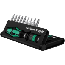Los juegos se componen del mango Kraftform, del porta-puntas de cambio rápido, y de las puntas para el atornillado tanto manual como a máquina.